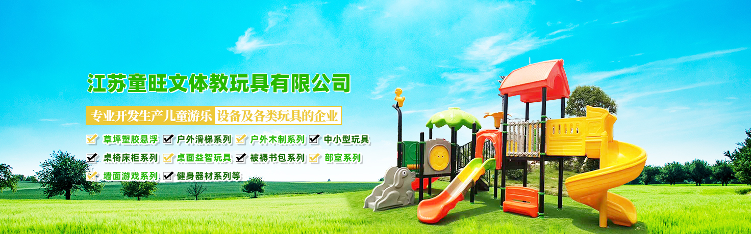 江蘇童旺文體教玩具有限公司是一家專業開發生產兒童游樂設備及各類玩具的企業。是一家集研發、生產、銷售、服務于一體的現代企業。主要產品有草坪塑膠懸浮,戶外滑梯系列,戶外木制系列,中小型玩具,桌椅床柜系列,部室系列,桌面益智玩具,被褥書包系列,墻面游戲系列,健身器材系列等。以完善的管理,先進精湛的技術,專業的工程設計,不斷研發產品,每個產品出廠前都會經過嚴格的檢驗測試工序...
